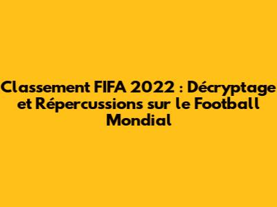 Classement FIFA 2022 : Analyse Et Impact Sur Le Football