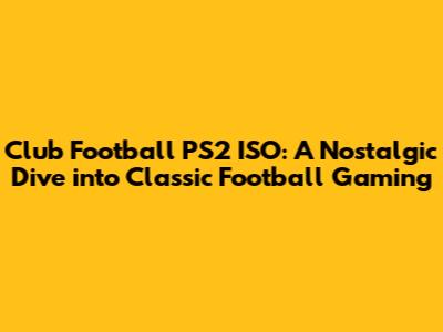 Download Club Football PS2 ISO: A Nostalgic Dive!