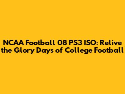 Download NCAA Football 08 ISO For PS3: A Nostalgic Dive