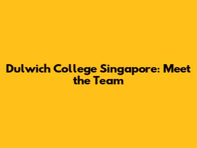 Dulwich College Singapore: Meet The Team