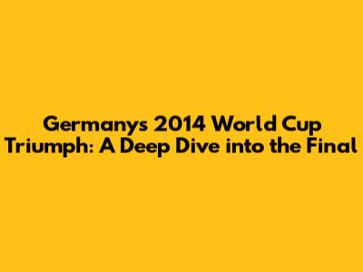 In conclusion, guys, the 2014 World Cup victory was a monumental achievement for the Germany national football team. From the tactical masterclass displayed on the field to the individual brilliance of key players, it was a tournament to remember. The final against Argentina was a nail-biting encounter, a testament to the grit and determination of both teams. But in the end, it was Germany who emerged victorious, etching their names in footballing history. The legacy of that victory continues to inspire, reminding us of the power of teamwork, dedication, and the pursuit of excellence.