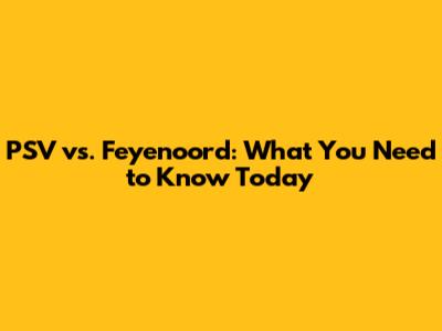 PSV Vs. Feyenoord: What You Need To Know Today