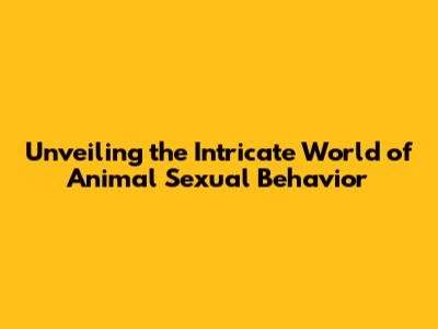 Unveiling The Intricate World Of Animal Sexual Behavior